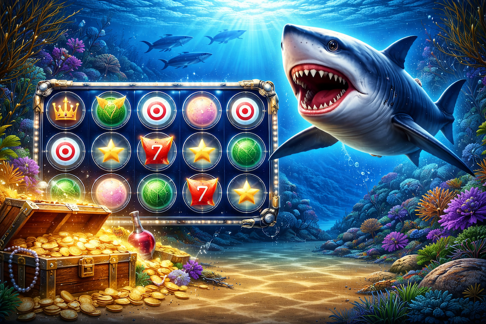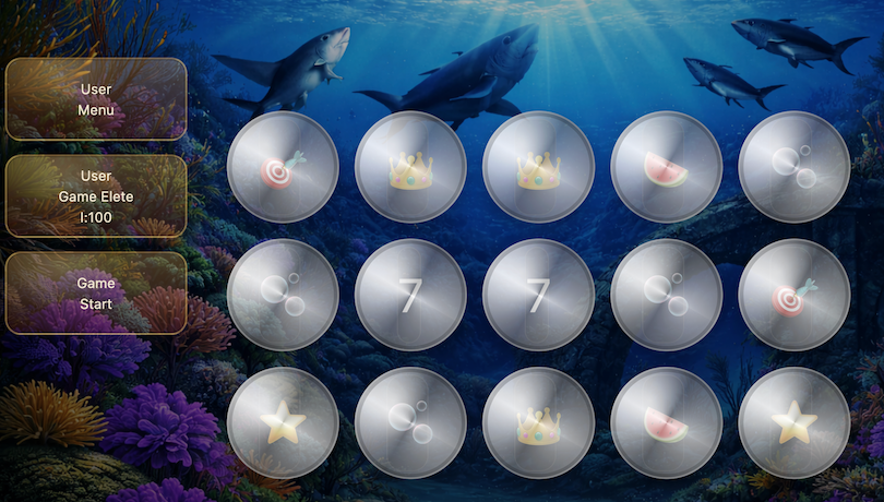 푸른 심해 배경과 상어·산호초 연출이 어우러져, 한 번의 플레이마다